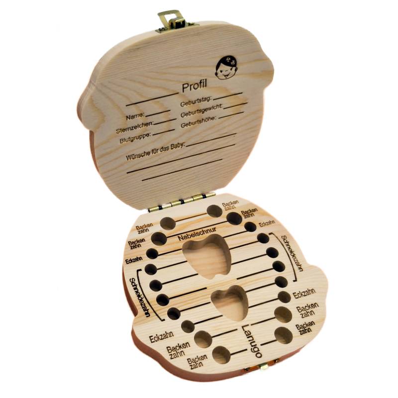 Milchzahnbox aus Holz mit niedlichem Motiv