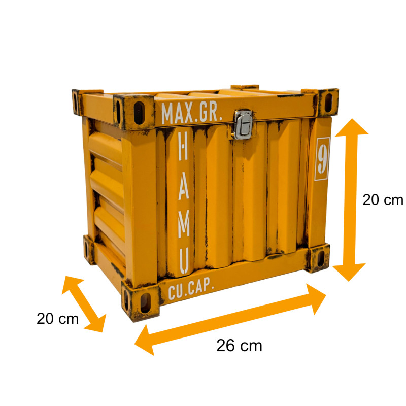 Diese dekorative Truhe im modernen Containerlook ist ein echtes Highlight für alle, die maritimes Flair und urbanes Design schätzen. Das Gelbe Design wird durch ein silberfarbenes Verschlusssystem abgerundet und sorgt für eine stilvolle, authentische Optik.