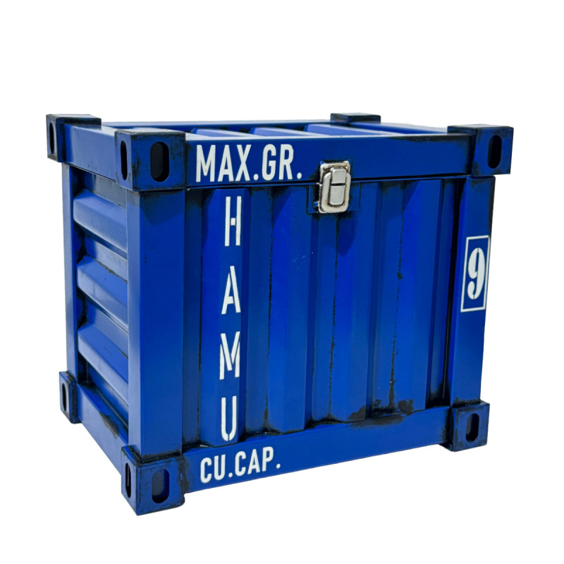 Diese dekorative Truhe im modernen Containerlook ist ein echtes Highlight für alle, die maritimes Flair und urbanes Design schätzen. Das blaue Design wird durch ein silberfarbenes Verschlusssystem abgerundet und sorgt für eine stilvolle, authentische Optik.